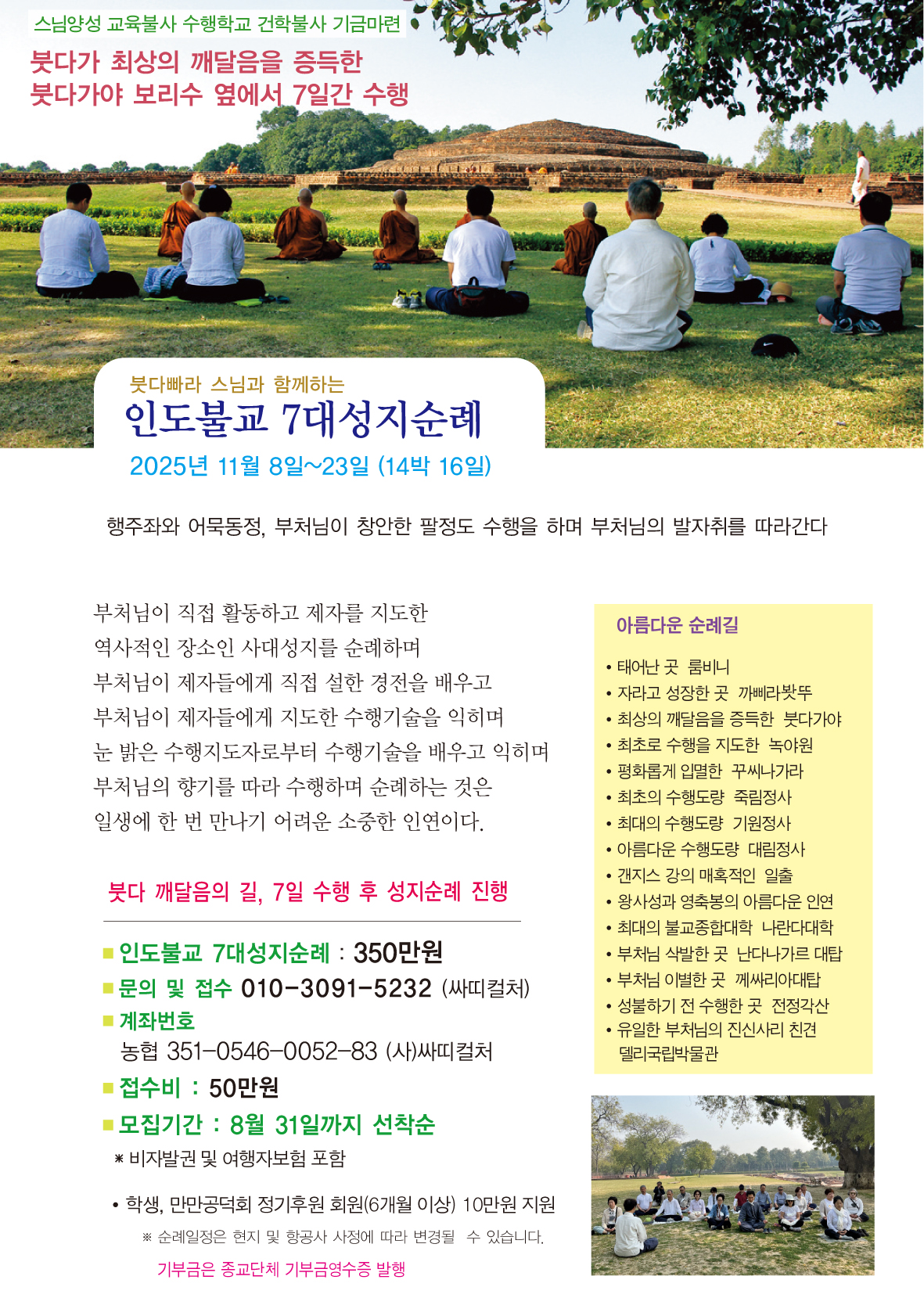 붓다빠라 스님과 함께하는 인도 7대 성지순례 참가 신청접수(~8월말 선착순)